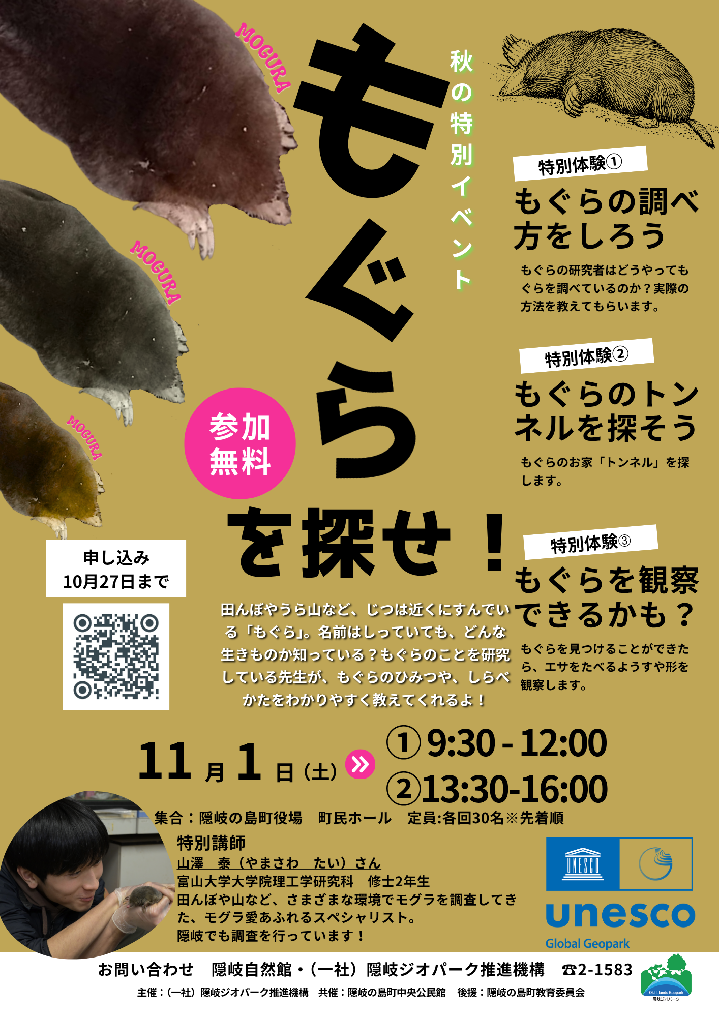 隠岐自然館秋の観察会 もぐらを探せ!の開催について
