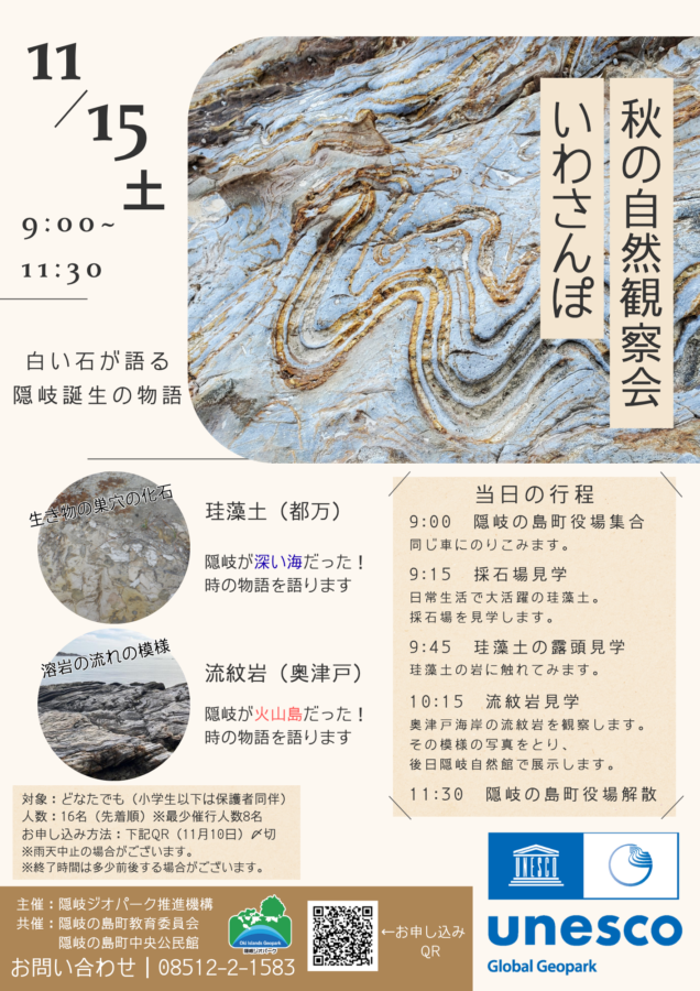 このイベントではその中でも白い岩石から隠岐誕生の物語を紐解きます。